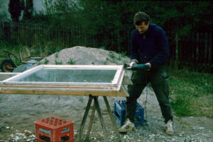 Fensterrecycling sehen. Dazwischen sind gekaufte Fenster. |