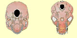 | Die unterschiedliche Gehirngröße ist an bestimmten Schädelmerkmalen abzulesen. |