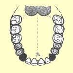 | Notieren Sie Unterschiede zur Form (5.) der Zahnleiste (oval oder hufeisenförmig), Größe der Eckzähne (6.) und zur Zahnlücke (7.) vor den Eckzähnen (Diastema): |